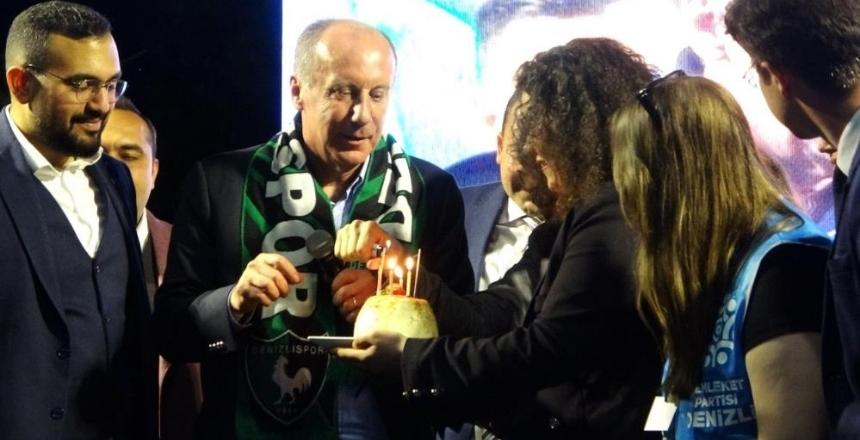 İnce’ye konuşmasının sonunda partililer, geçmiş doğum günü nedeniyle sürpriz yaptı. İnce, partililerin getirdiği pastanın mumlarını üfledi.