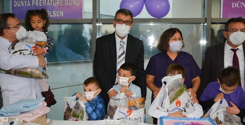 Kurdele kesiminin ardından Rektör Ahmet Kutluhan, Meral ve Nuriye Keskin’e teşekkür belgesi takdim ettikten sonra yenidoğan ünitesinde incelemelerde bulundu.