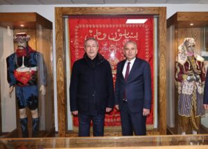 Ziyarete Akar’ın yanı sıra Pamukkale Üniversitesi Rektörü Prof. Dr. Ahmet Kutluhan, AK Parti Denizli İl Başkanı Yücel Güngör, MHP Denizli İl Başkanı Mehmet Ali Yılmaz ile beraberindekiler eşlik etti. Başkan Zolan ilk olarak Akar’a Büyükşehir Belediyesi Kültür ve Sosyal İşler Dairesi Başkanlığı’nda sergilenen Yatağan Palası, Büyükşehir Belediyesi Kültür Yayınlarından oluşan eserleri ve Denizli Sancağını anlattı. 15 Mayıs 1919’da Müftü Ahmet Hulusi Efendi’nin Denizli Sancağı ile ilk direnişi başlattığından bahseden Başkan Zolan, Akar’a Denizli Büyükşehir Belediyesi’nin yatırımlarını anlattı.